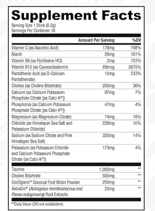 - Electrolytes (900mg+)